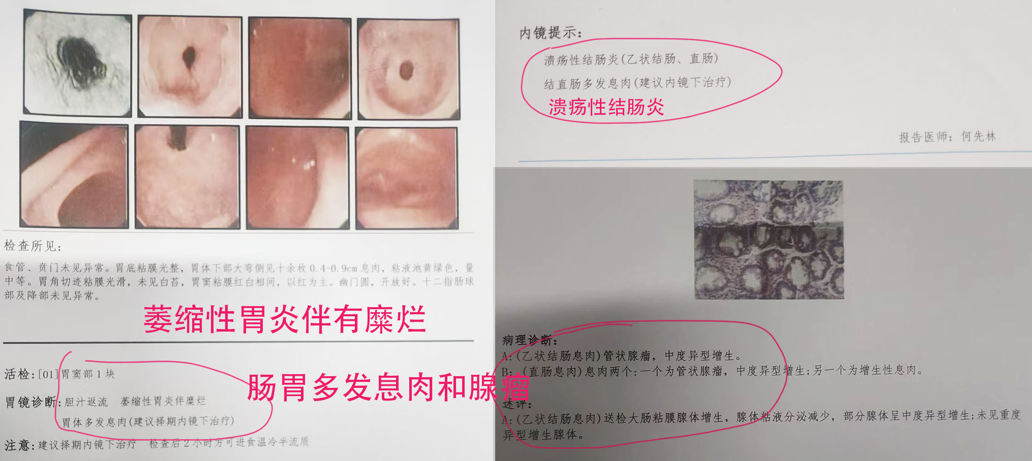 (这是刚检查出肠胃息肉、肠胃炎的报告,听医生讲完当时就很慌很害怕)