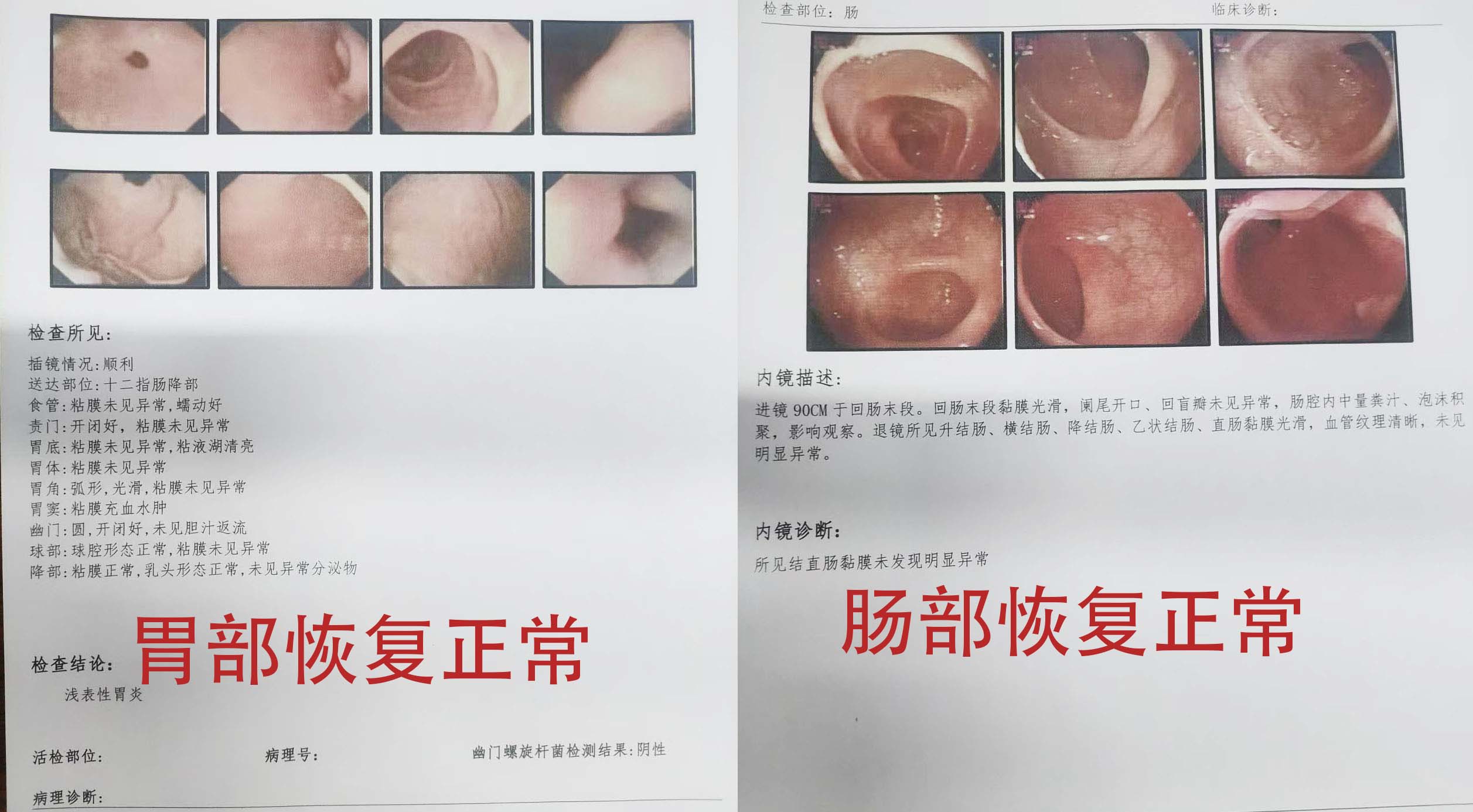 一开始让于主任给我治疗,当时因为距离远,给我邮寄的药物,也不用我自己熬煮,方便服用,调理第5天,腹部疼痛的症状慢慢改善了,我也没想到见效这么快,调理第9天肚子胀气不消化、肠鸣的也在慢慢减轻,调理3周后,腹部不疼了,大便成型了、肚子胀气不消化、肠鸣、拉肚子等各种不适症状都基本消失了。紧接着我又巩固了一个周期后,进行了肠镜复查显示,结肠胃息肉没有了。看到复查的肠镜结果,有说不出来的激动,真的特别特别感谢老中医,一直到现在,已经一年多了,也没有在复发过。当然我知道得来不易,更加注意规律生活饮食!